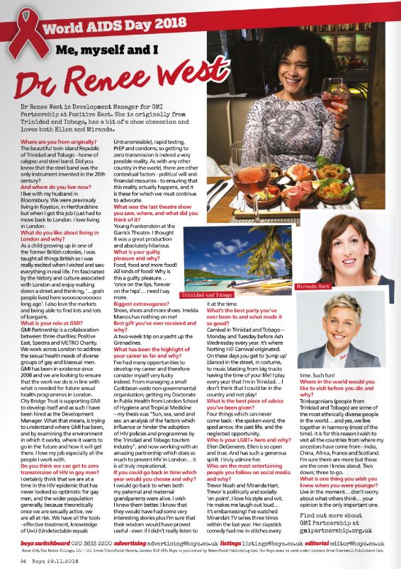 It’s World AIDS Day 2018 special edition! Dr. Renee West, GMI’s fabulous development manager, is interviewed by Boyz magazine. Click on the image below to find out more about her.